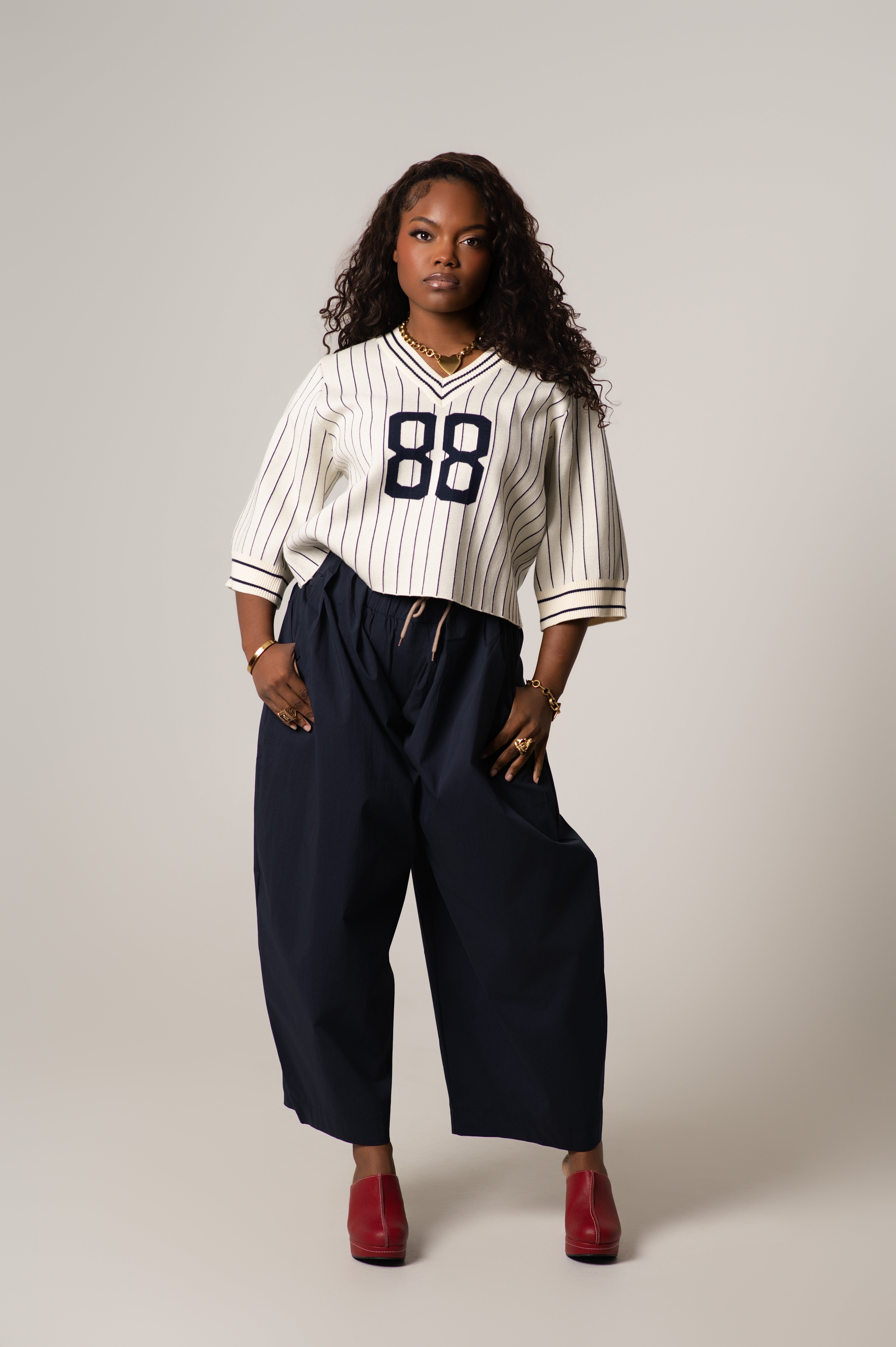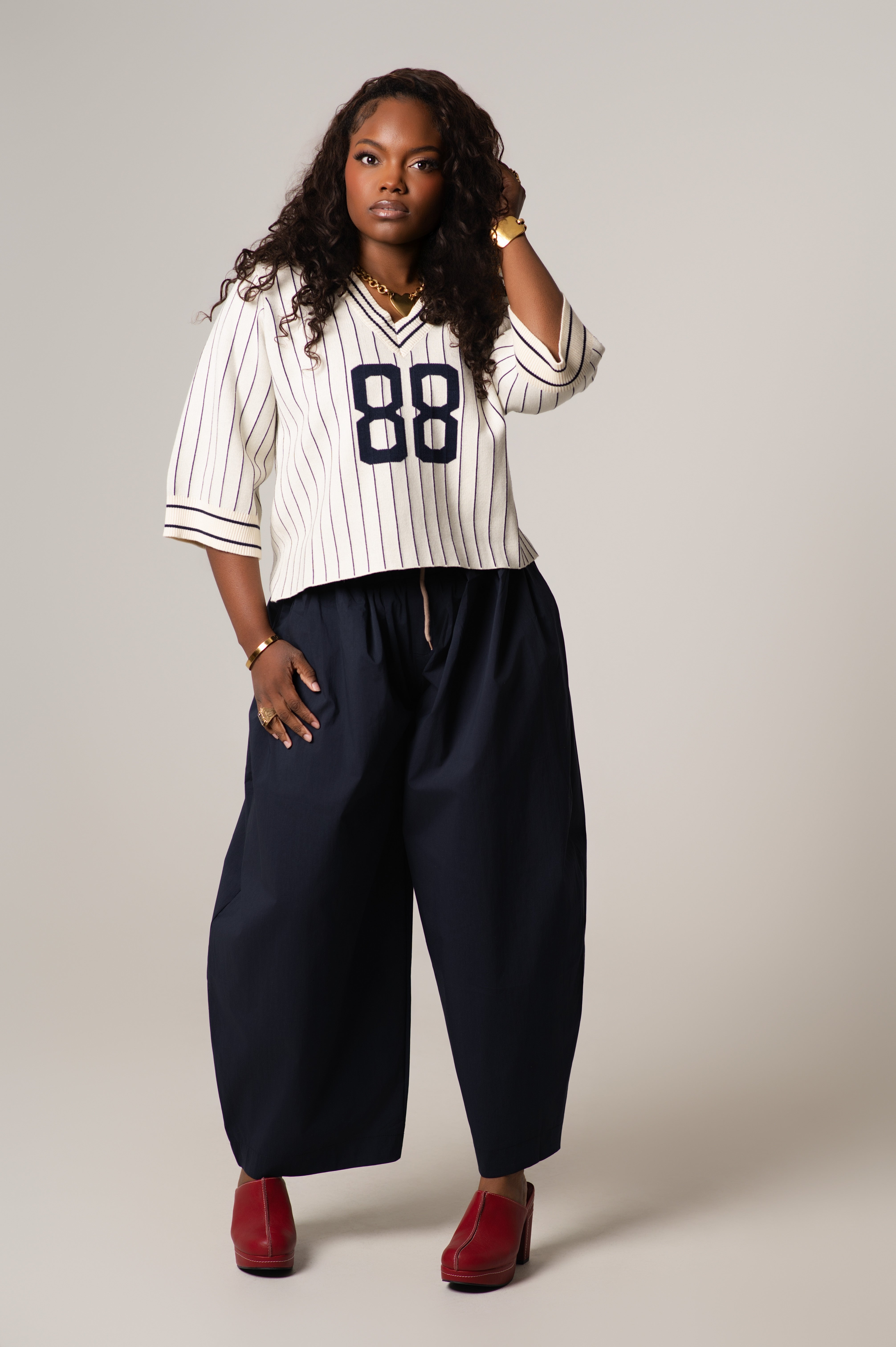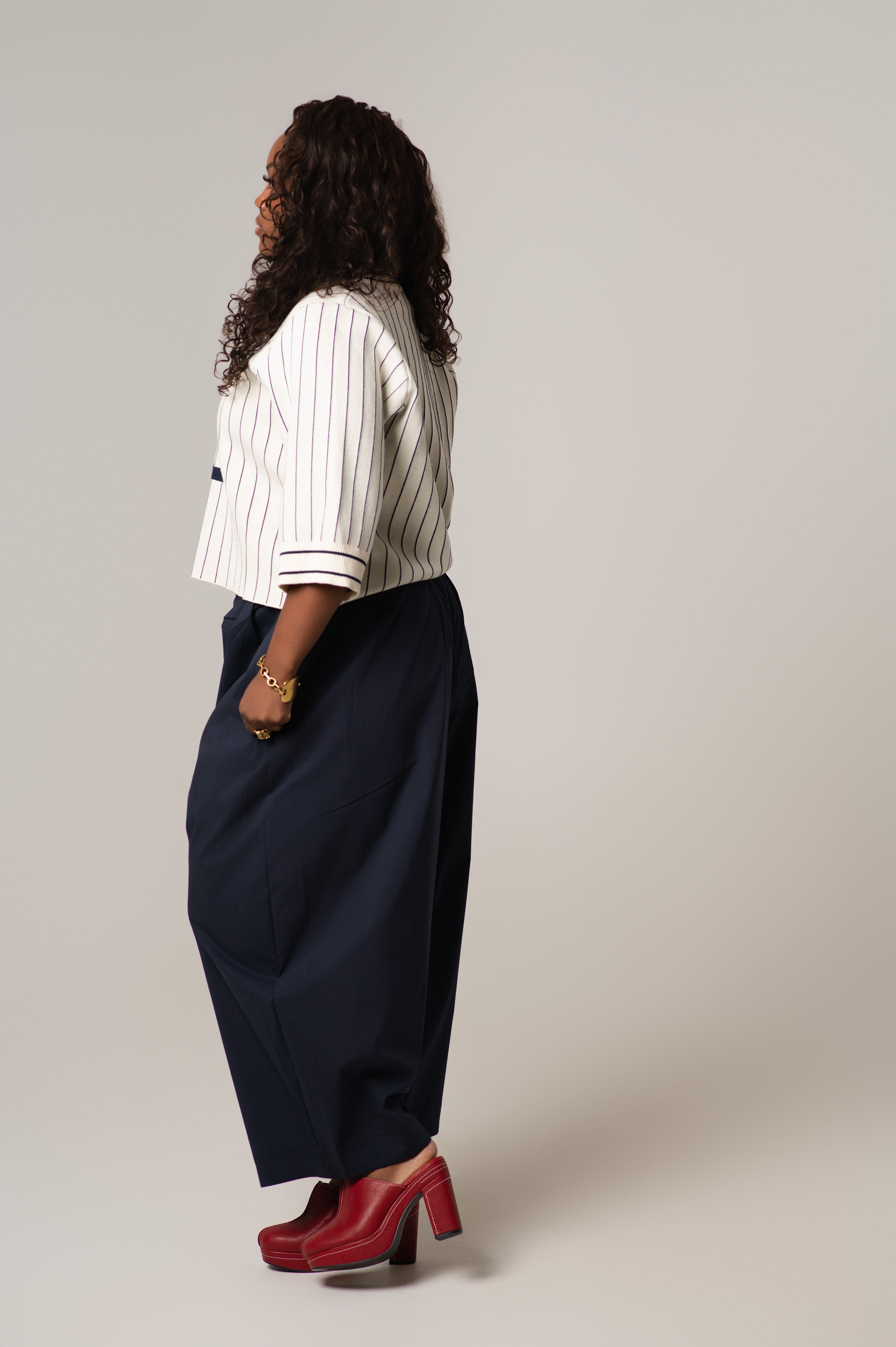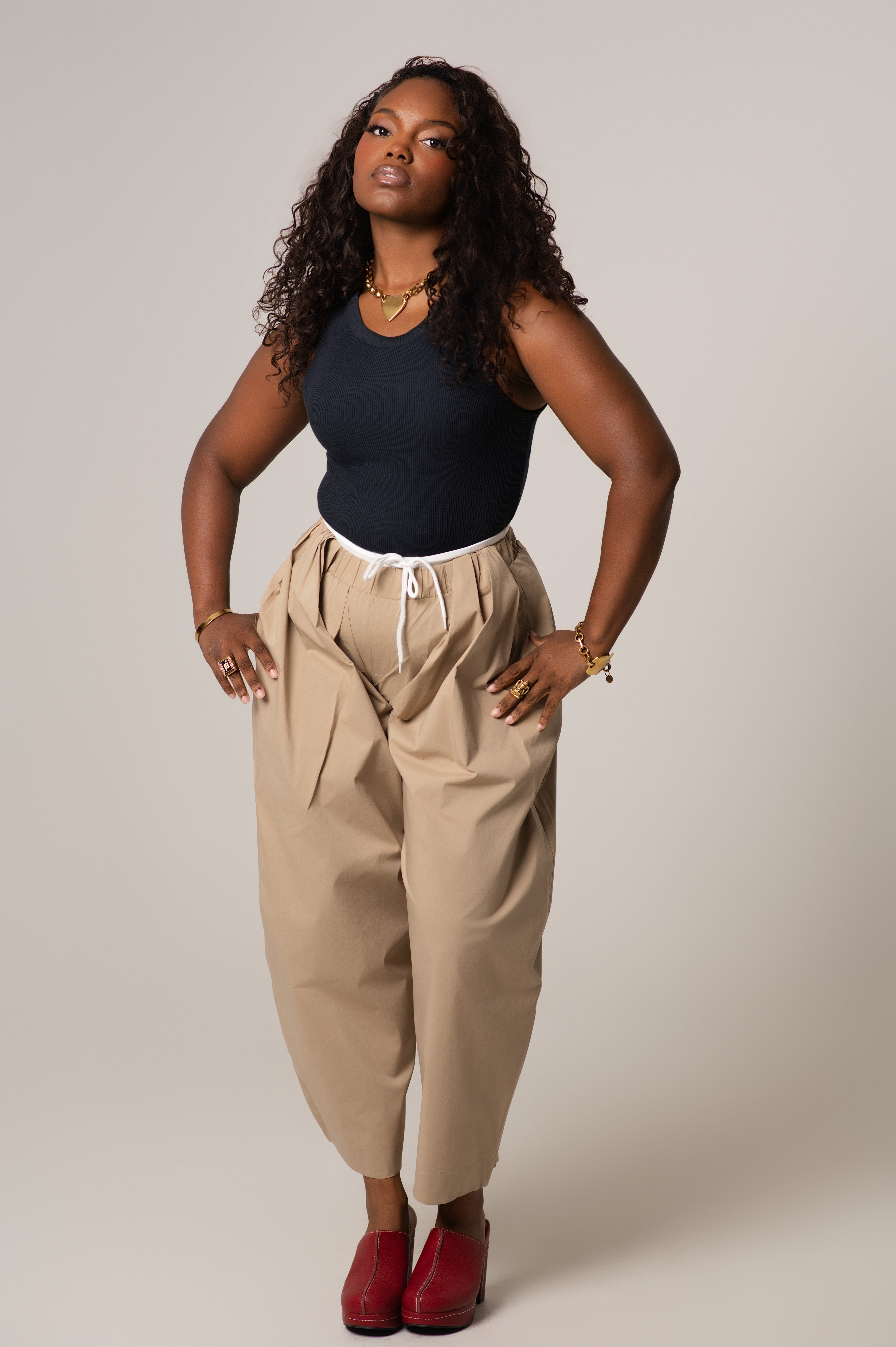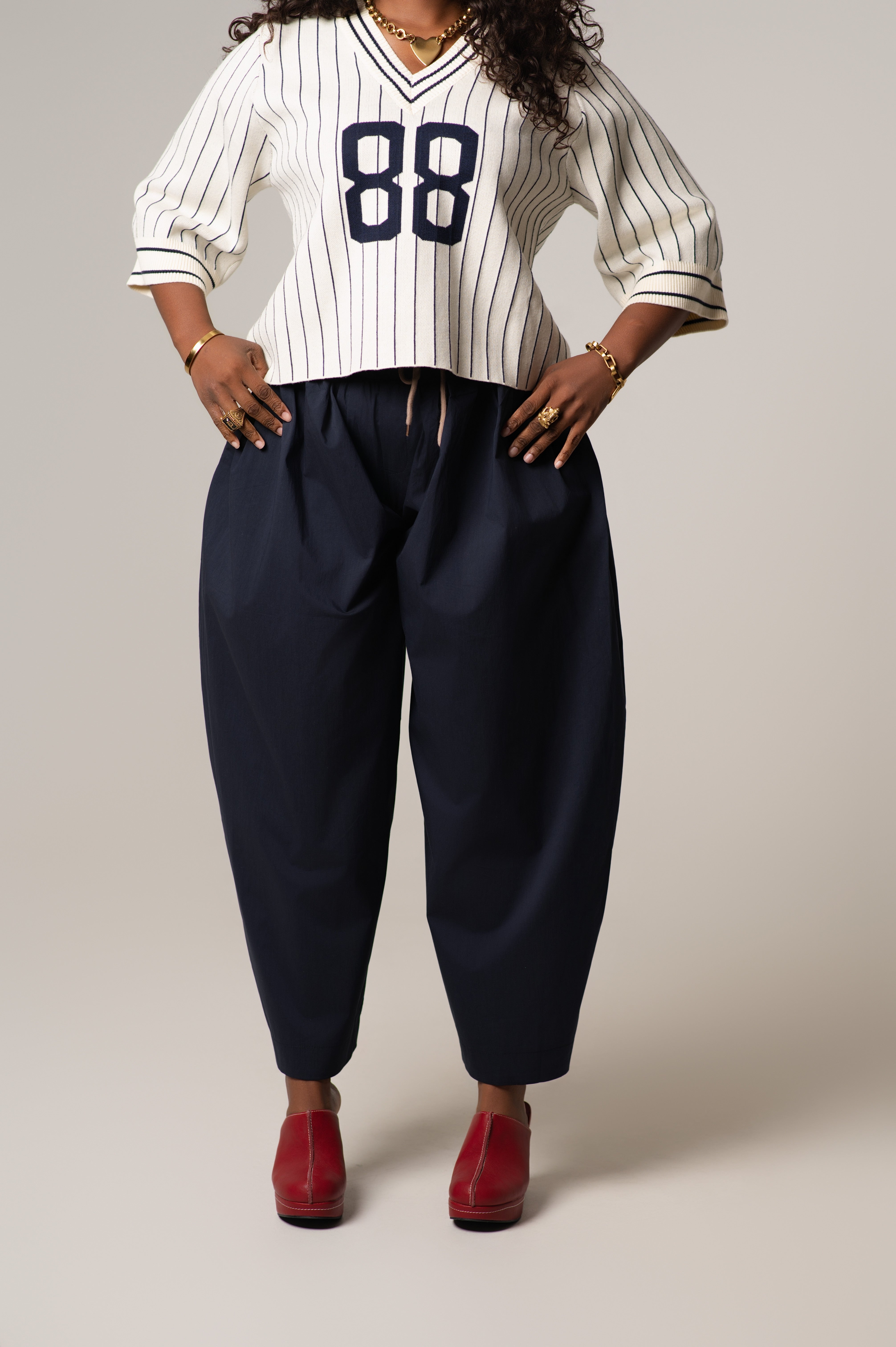 The Mady Cropped Barrel Nylon Pants are a lightweight and  functional staple. Designed with a subtle barrel leg and cropped length, these pants feature a contrasting color waistband that adds just the right amount of visual interest. Made from durable, lightweight nylon with a smooth finish, they’re perfect for transitional weather, off-duty days, or elevated casual looks.