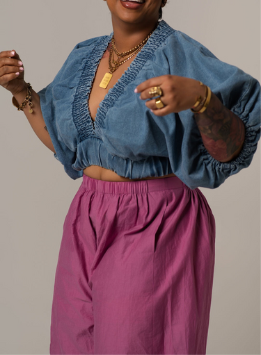• Lada Denim Puff Sleeve Cropped Top – Feminine, flattering, and fashion-forward
