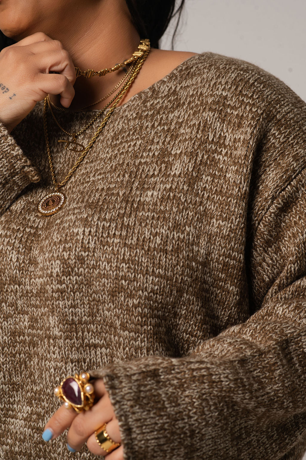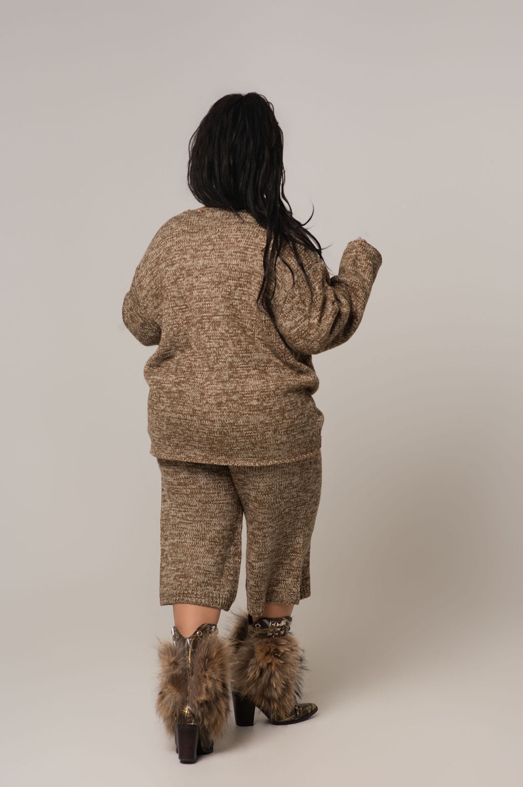 The Tobias Sweater Short Set is a thoughtfully designed two-piece that works as hard as you do. The oversized sweater top pairs warm brown tones with delicate cream accents in a soft, breathable knit that moves with you. The matching calf-length shorts feature exceptional stretch and a forgiving elastic waistband, so you can focus on your day without distraction. Whether you're working from home, running errands, or unwinding with friends, this set supports your lifestyle with comfort and understated elegance.