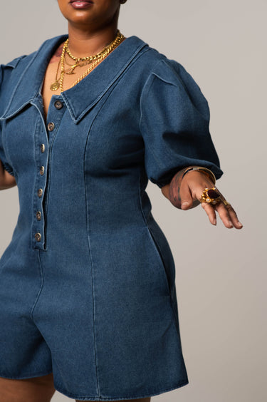 The Texas Romper is where playful charm meets denim fun. Featuring a statement Peter Pan collar, wide bubble sleeves, and a button-up front, this romper brings vintage flair with a modern twist. Made from mid-weight cotton denim, it offers structure with softness, and the wide-cut shorts provide room and movement for all-day comfort.